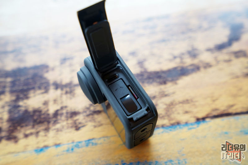 액세서리를 장착할때는 다리를 펼쳐서 연결을 하면 됩니다. 고프로를 사용해 본 분이라면 이 변화 하나만으로도 찬사를 보내지 않을까 합니다. 충전을 할때도 꼭 케이스를 분리해서 했어야 했는데 이제는 덮개만 열어서 하면 되기 때문에 사용성이 확실히 좋아졌습니다.