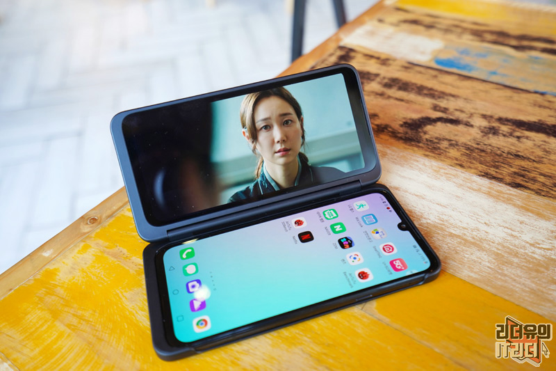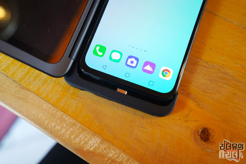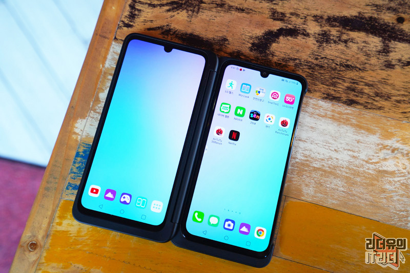 참고로 듀얼 스크린에도 노치 영역이 보이는데 이 부분에 카메라가 들어가지는 않았습니다. 그래서 이 부분에 왜 그랬을까 의문이 드실 수 있는데요. LG전자는 완벽하게 똑같은 두개의 스마트폰을 보여주려 한 거 같습니다. 저도 처음엔 이해가 안되었지만 보다 보니 듀얼스크린만의 완벽한 싱크로율을 보여줘 유니크한 감성을 느낄 수 있습니다