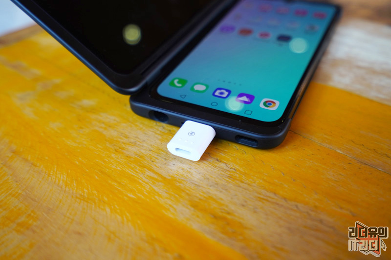 LG V50S ThinQ에는 독특한 구성품이 있습니다. 듀얼스크린 장착시 충전을 할 수 있게 해주는 젠더 입니다. LG V50 ThinQ에서는 포고핀 방식으로 듀얼스크린이 연결되었는데 LG V50S ThinQ에서는 USB-C 방식으로 변경되어 듀얼스크린 장착시 젠더를 통해서 충전이 가능합니다