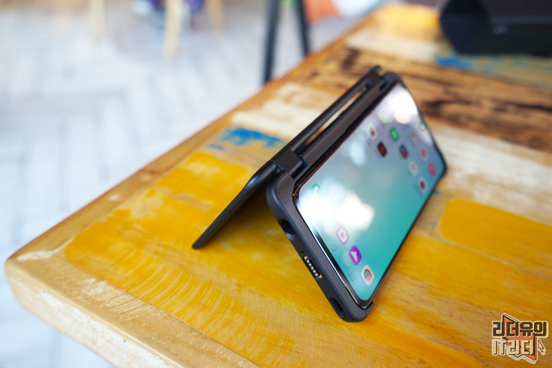 영화 볼때 이렇게 세워서 보면 되기 때문에 거치대가 필요 없습니다. 여기다 영화는 영화대로 보면서 카톡, 문자, 인터넷 검색도 가능해 두대의 스마트폰을 사용하는 느낌입니다.