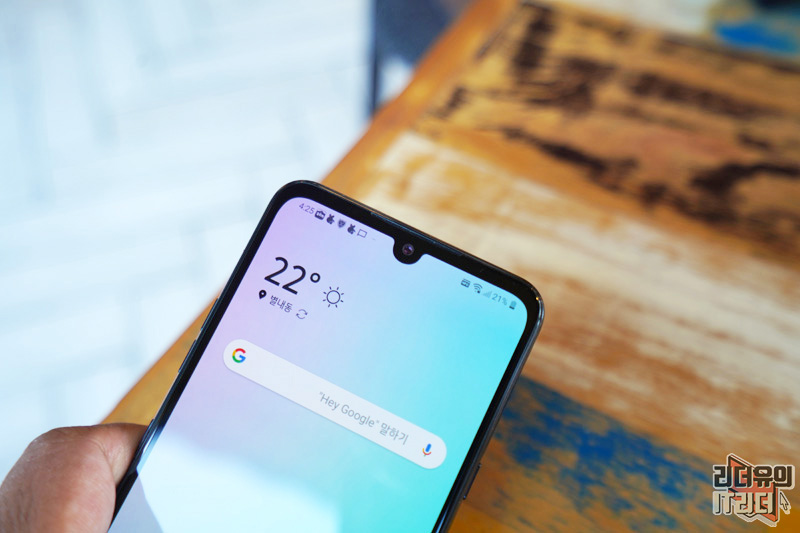 상단을 보면 일명 물방울 노치라 불리는 새로운 세컨드 스크린이 적용되었습니다. 전작보다 카메라 영역이 작아져서 꽉찬 화면을 볼 수 있는 매력을 갖췄고 전면 카메라 화소수가 무려 3,200만 화소로 셀피 촬영에도 신경을 쓴 것을 알 수 있습니다.