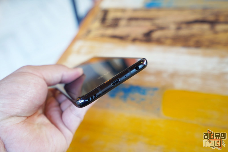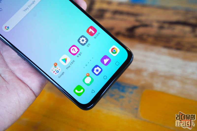 LG V50S ThinQ 하단면을 보면 살짝 두껍게 배젤 처리가 되어 있어 아쉽지만 전체적으로 꽉찬 디스플레이의 매력을 느끼기엔 부족함이 없습니다.
