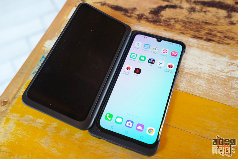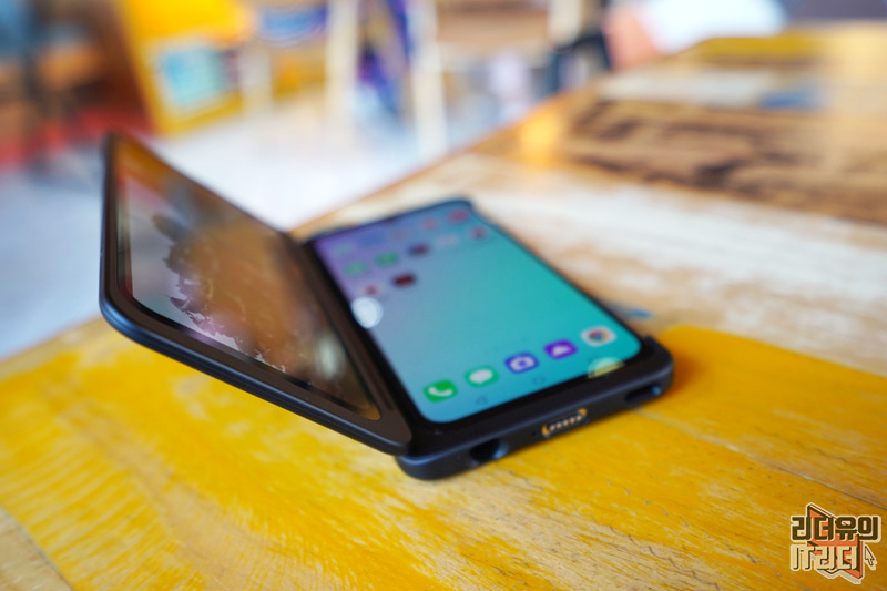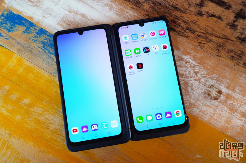 참고로 듀얼 스크린에도 노치 영역이 보이는데 이 부분에 카메라가 들어가지는 않았습니다. 그래서 이 부분에 왜 그랬을까 의문이 드실 수 있는데요. LG전자는 완벽하게 똑같은 두개의 스마트폰을 보여주려 한 거 같습니다. 저도 처음엔 이해가 안되었지만 보다 보니 듀얼스크린만의 완벽한 싱크로율을 보여줘 유니크한 감성을 느낄 수 있습니다