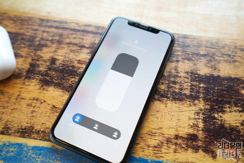 에어팟 프로 연결 후 제어센터를 내리면 음량 조절에 에어팟 프로 이미지가 표시 됩니다.