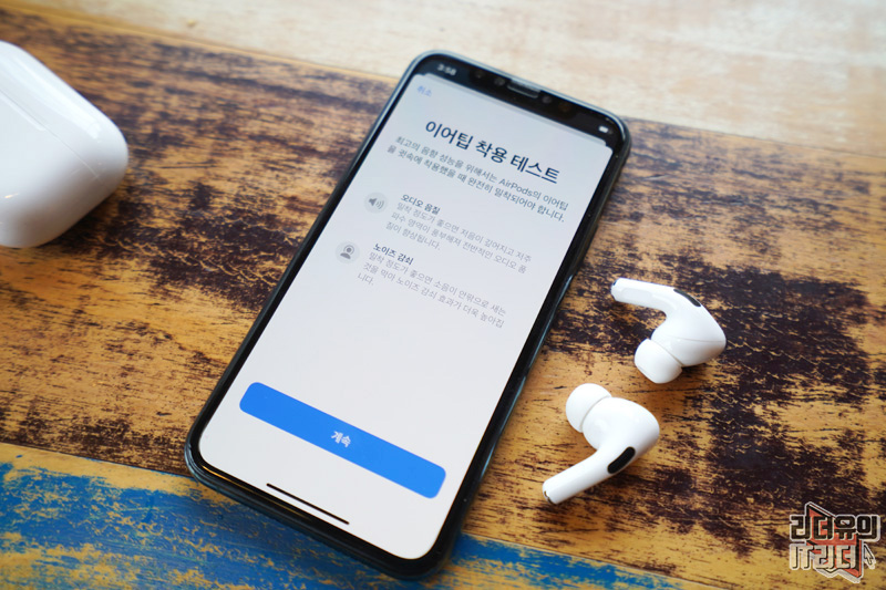 에어팟 프로는 센스있게 이어팁 착용 테스트 기능도 세부 설정에 제공하고 있습니다.