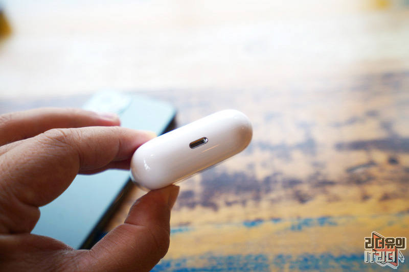 열리는 방식은 가로로 여는 방식입니다. 즉, 에어팟은 세로로 오픈하는 느낌, 에어팟 프로는 가로로 된 걸 오픈하는 느낌입니다. 여는 느낌은 기존 에어팟과 똑같다 보시면 됩니다. 자석처리로 된 느낌이 탄력있고 사용 느낌이 좋습니다.