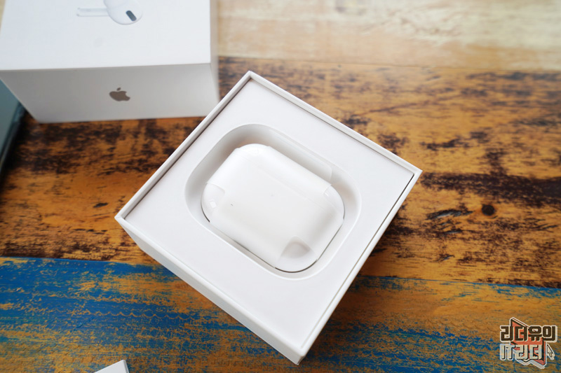 그 아래 에어팟 프로가 들어 있습니다. 사진에서 봤을때는 좀 큰 사이즈가 아닐까 생각했는데 너무 작아서 놀랐습니다.