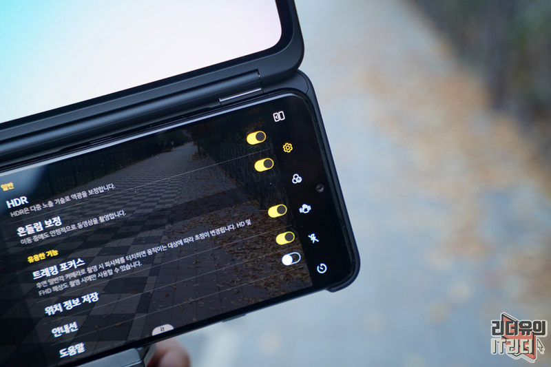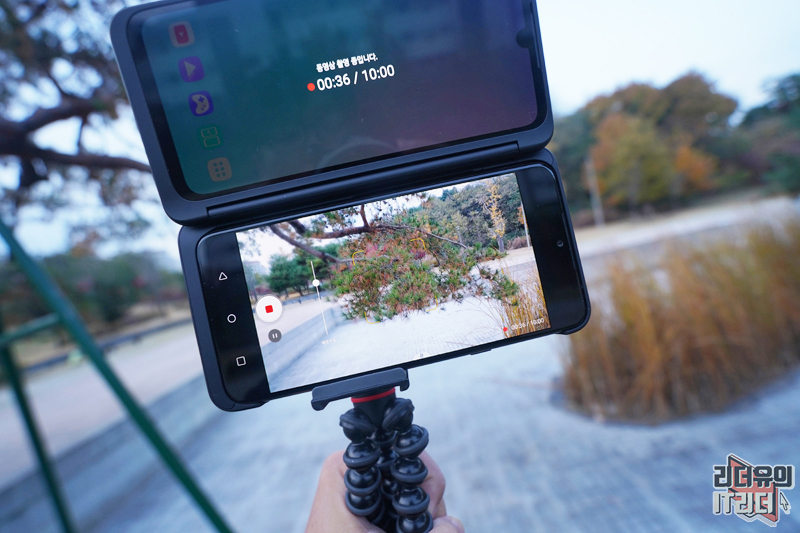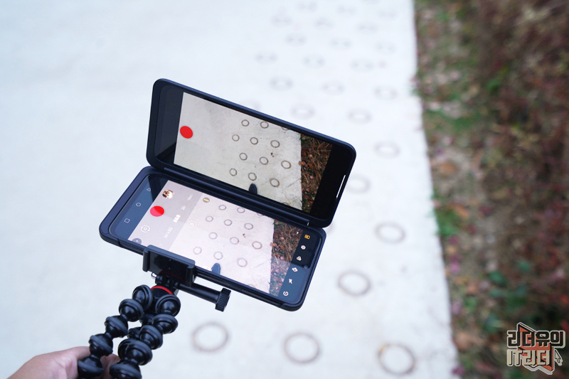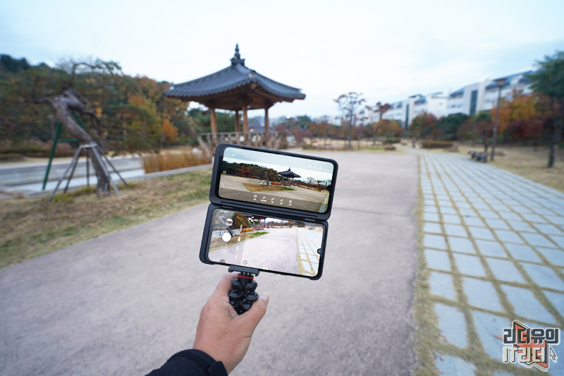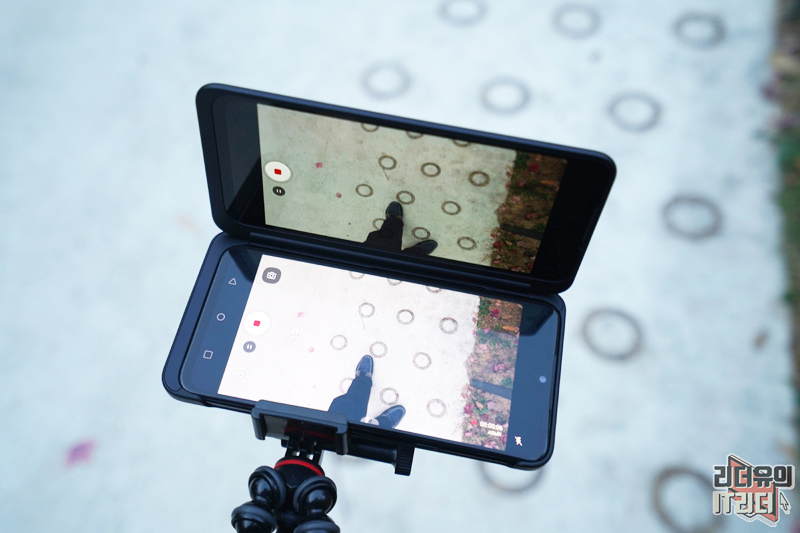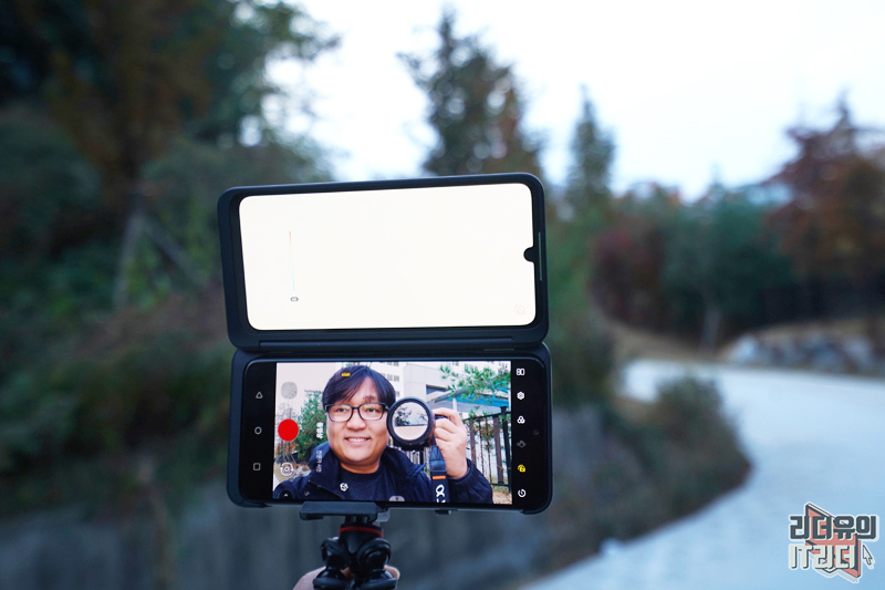 LG V50S ThinQ는 VLOG 카메라 활용시 남다른 사용성을 가지고 있습니다. 이렇게 두개의 화면이 있기 때문에 평상시 촬영하는 시선이 아닌 다양한 시선으로 영상을 담을 수 있다는게 특징입니다.
