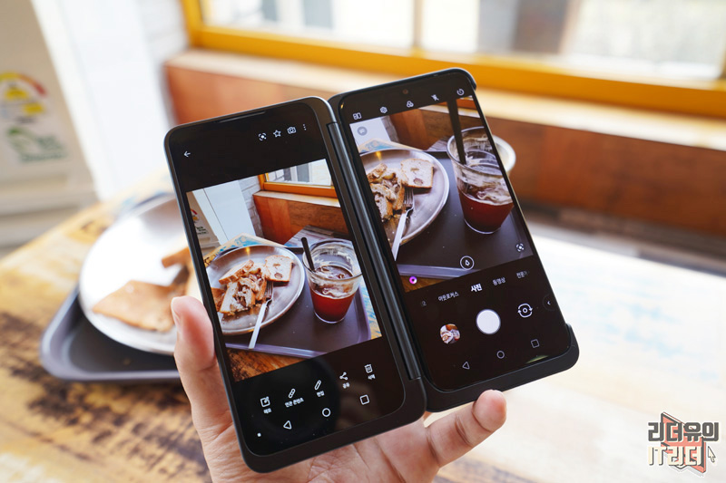 듀얼 스크린을 활용한 카메라 사용! 보통의 스마트폰에서는 불가능한 사용씬이 LG V50S ThinQ에서는 아무렇지 않게 이용이 됩니다.
