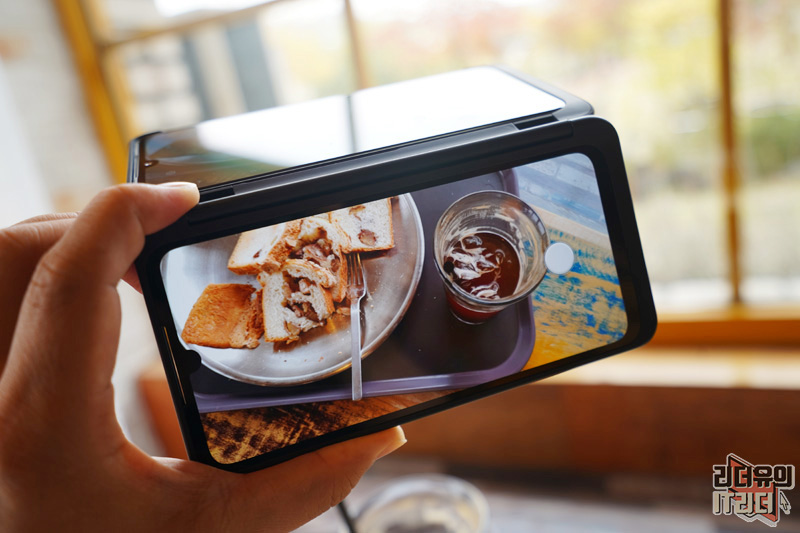 사진을 찍을때도 이렇게 가능합니다. 위에서 찍는 사진이라고 하죠. 보통 일어나서 찍지만 LG V50S ThinQ에서는 그냥 앉아서도 이런 사진 촬영이 가능합니다.