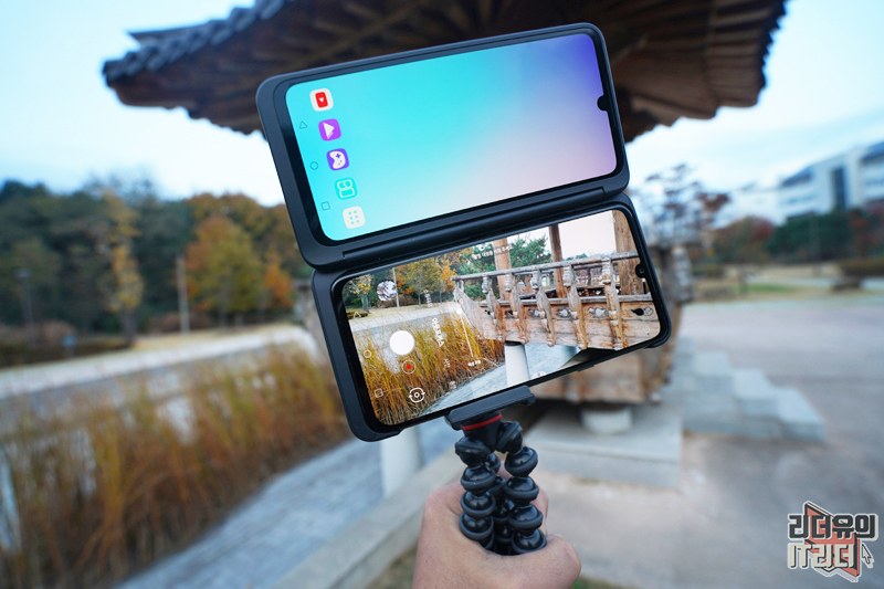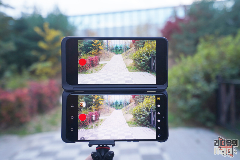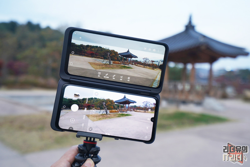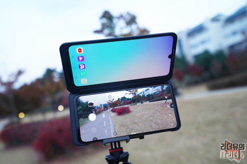 LG V50S ThinQ는 VLOG 카메라 활용시 남다른 사용성을 가지고 있습니다. 이렇게 두개의 화면이 있기 때문에 평상시 촬영하는 시선이 아닌 다양한 시선으로 영상을 담을 수 있다는게 특징입니다.