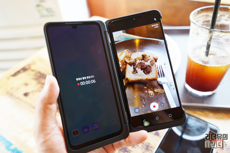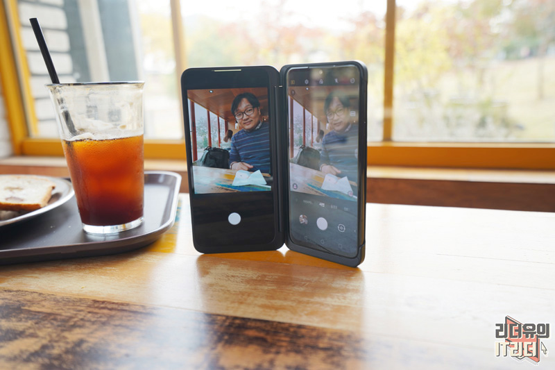 듀얼 스크린을 활용한 카메라 사용! 보통의 스마트폰에서는 불가능한 사용씬이 LG V50S ThinQ에서는 아무렇지 않게 이용이 됩니다.