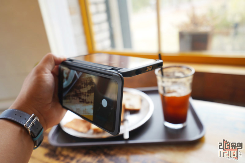 사진을 찍을때도 이렇게 가능합니다. 위에서 찍는 사진이라고 하죠. 보통 일어나서 찍지만 LG V50S ThinQ에서는 그냥 앉아서도 이런 사진 촬영이 가능합니다.