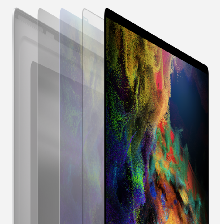 맥북프로 16인치는 더 커진 디스플레이를 기술적으로 강조하고 있습니다. P3의 넓은 색영역을 정확하게 재현하고 산화물 박막 트랜지스터(TFT)는 일반적인 비정질 실리콘 TFT보다 픽셀 충전 속도가 10배 더 빠르고, 저주파 절전 모드에서도 픽셀 전압을 안정적으로 유지하고 있습니다.