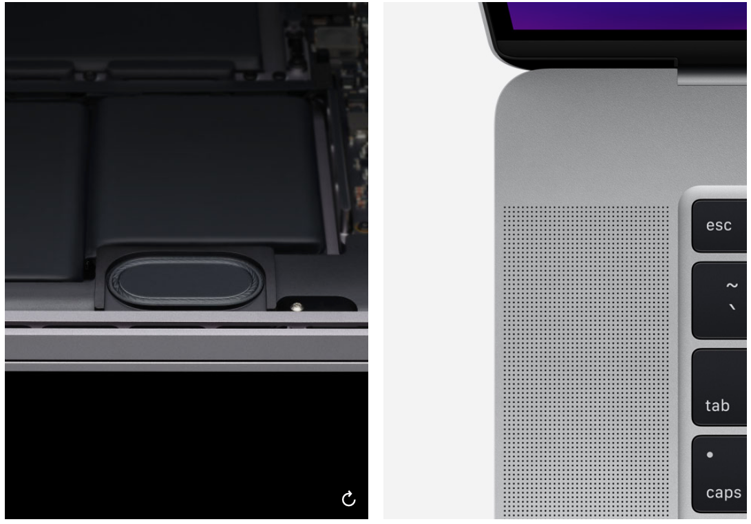 맥북프로 16인치는 기존 나비식 메커니즘에서 새롭게 설계된 가위식 메커니즘으로 변경되었습니다. 키 트래블이 1mm로 최적화되어 빠른 반응 속도를 가져가고 편안하고 조용한 타이핑을 할 수 있습니다. 기존 나비식 키보드도 좋았지만 문제가 된 점이 있어서 새롭게 설계된 키보드가 적용되었다 보시면 되겠습니다.