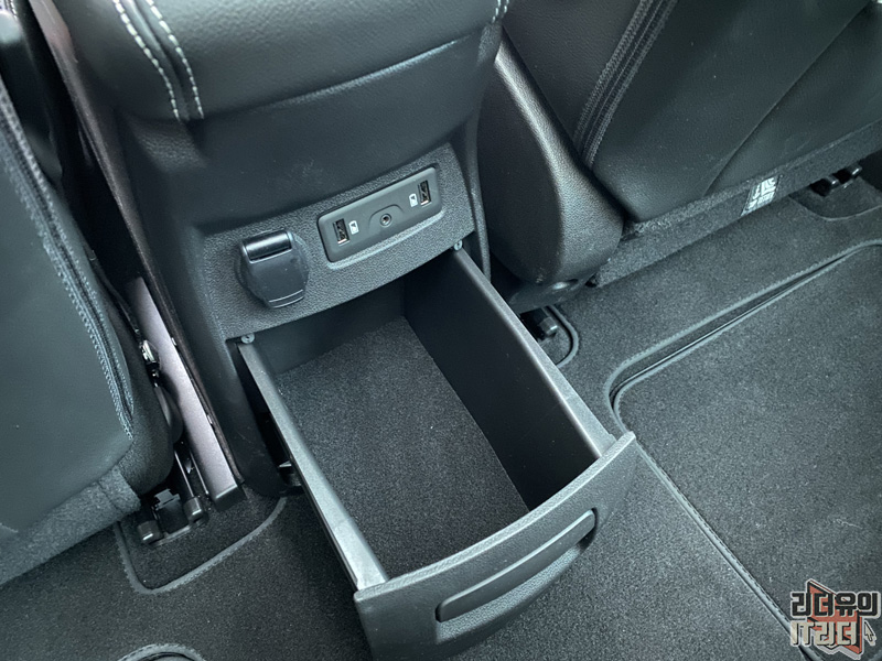 뒷자리에도 이렇게 수납공간이 크게 있습니다. 보통 뒷자리에는 작은 서랍이 들어가는데 그랜드세닉은 여유롭게 수납이 가능하도록 깊이도 깊고 넓이도 큰 수납공간이 있습니다. 그리고 USB 단자도 2개나 제공해 뒷자리에 탄 사람들을 배려하고 있습니다.