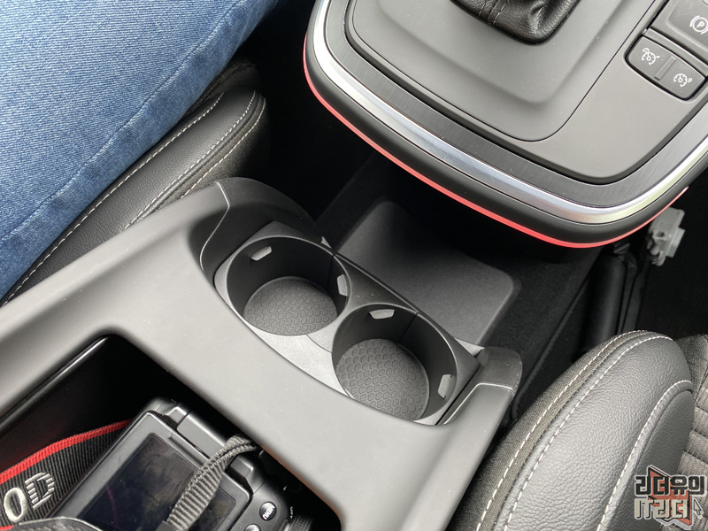 가운데 팔걸이 공간은 수납을 위한 다양한 장치가 되어 있는데요. DSLR 카메라도 넣을 수 있는 공간이 있고 컵홀더를 사용할때 안할때 변신을 할 수 있게 되어 있습니다.
