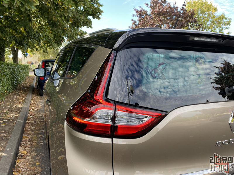 르노 그랜드세닉 테일램프는 뒷유리 사이드를 감싸는 디자인으로 유니크한 매력을 제시했습니다.