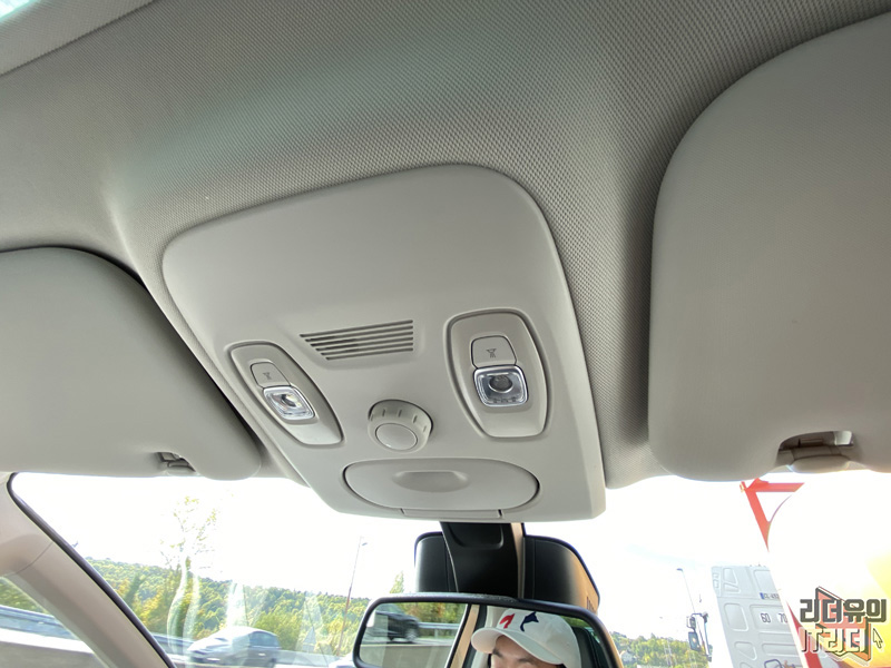 썬루프를 컨트롤 하는 다이얼과 실내등입니다. 뒷자리를 볼 수 있는 별도의 거울도 배치되어 있습니다.