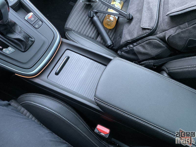 가운데 팔걸이 공간은 수납을 위한 다양한 장치가 되어 있는데요. DSLR 카메라도 넣을 수 있는 공간이 있고 컵홀더를 사용할때 안할때 변신을 할 수 있게 되어 있습니다.