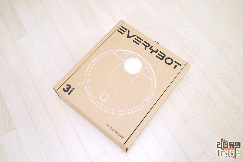 깔끔한 에브리봇 3i 패키지 입니다. 친환경 느낌으로 깔끔하게 패키징 되어 있습니다.