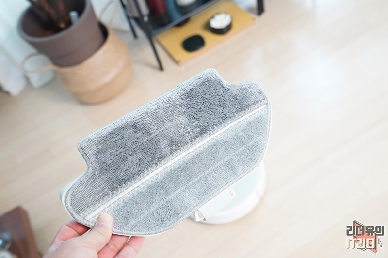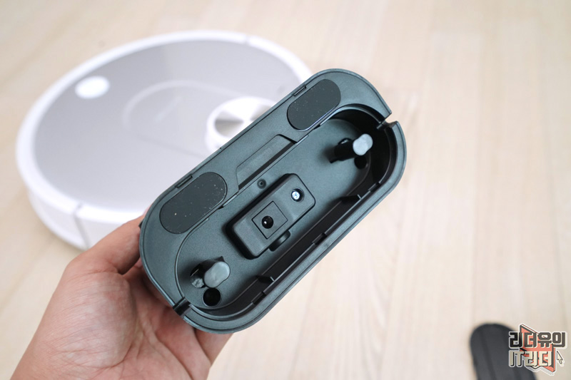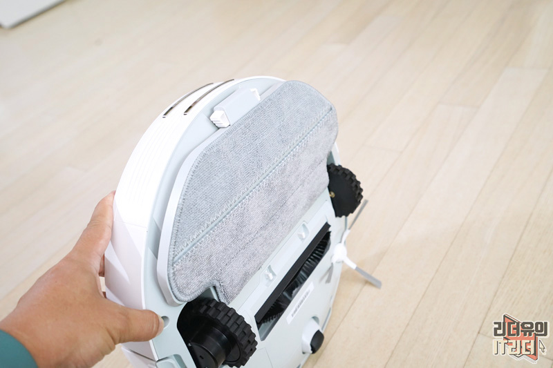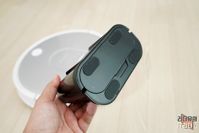 걸레 키트 탈부착도 간편하게 되어 있습니다. 아래쪽에 보면 홈이 있는데요. 거기에 찰칵 들어가는 구조입니다.