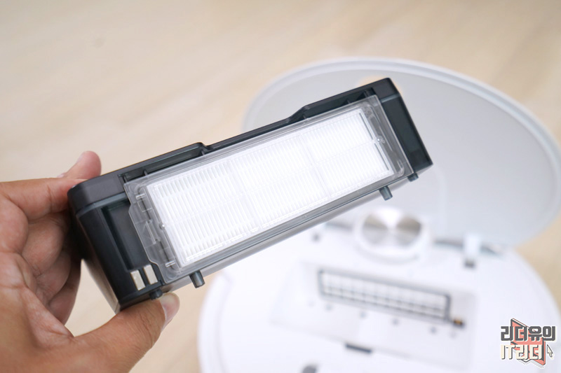 뒤쪽에 헤파필터가 있어 안에 들어온 먼지가 외부로 나가지 않게 되어 있습니다.