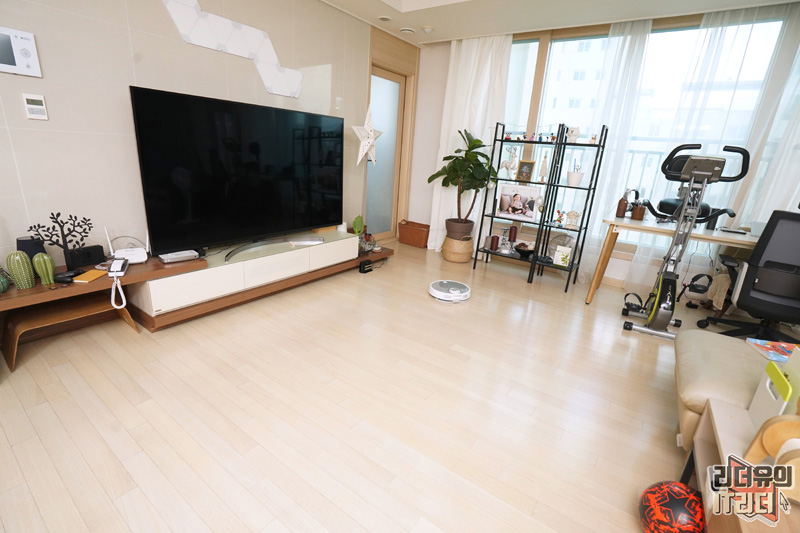 이 넓은 공간을 매번 청소하려고 하면 시간도 뺏기고 힘들겠지요~ 에브리봇 3i가 수시로 청소를 하기 때문에 먼지가 쌓일 틈이 없습니다
