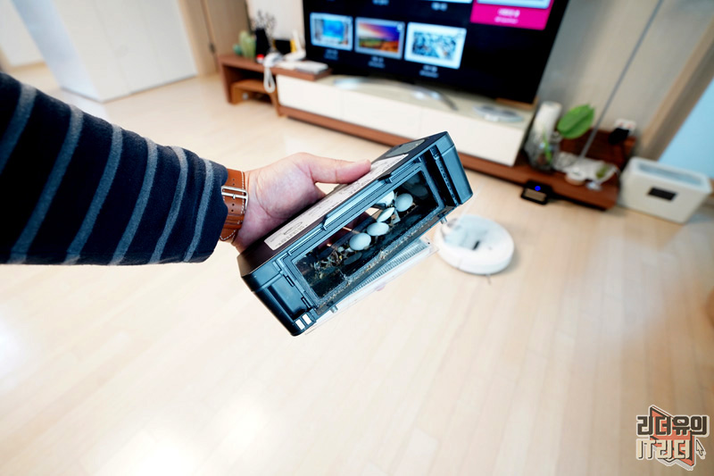 흡입력 테스트를 위해 바둑알까지 뒀는데요. 잘 빨아들이는걸 확인해 볼 수 있습니다. 흡입력도 인정입니다.