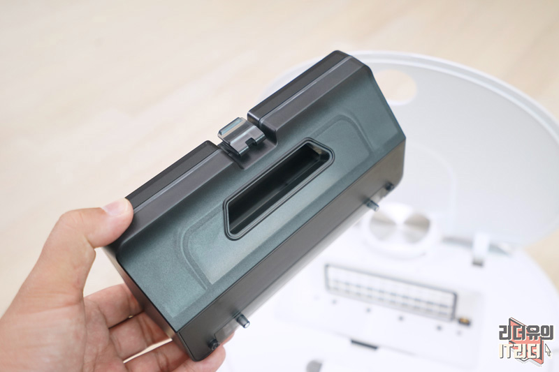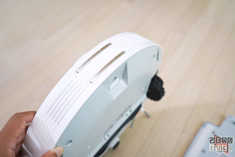 걸레 키트 탈부착도 간편하게 되어 있습니다. 아래쪽에 보면 홈이 있는데요. 거기에 찰칵 들어가는 구조입니다.
