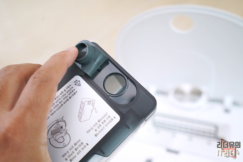 에브리봇 3i는 물통과 먼지통의 일체형 구조로 물걸레 청소도 가능하기 때문에 먼지통 사이드 부분에 있는 부분에 물을 넣어서 사용합니다. 물분사량도 스마트폰으로 조절이 가능한 스마트한 물걸레 로봇청소기 입니다