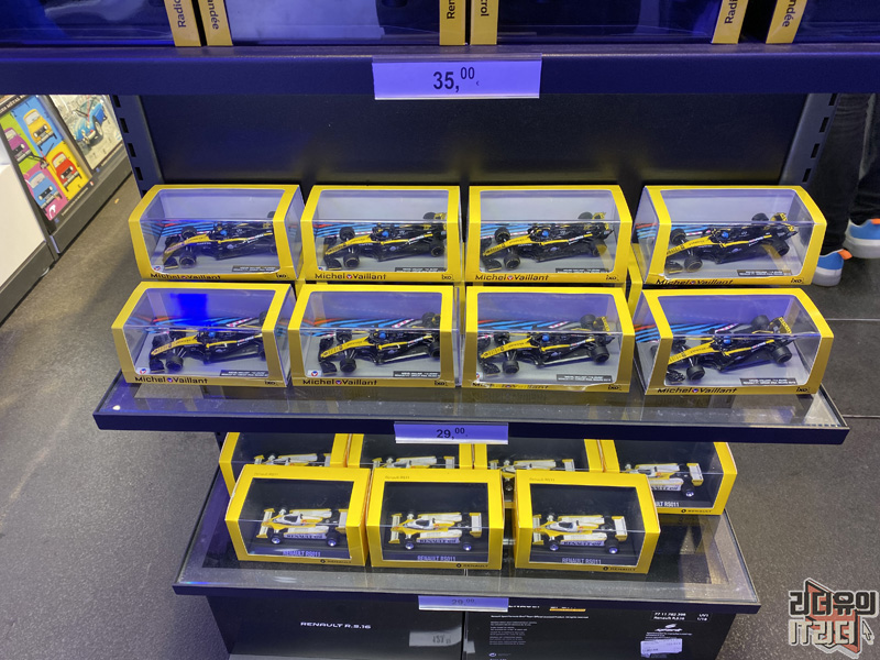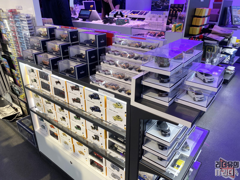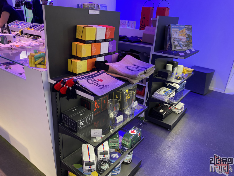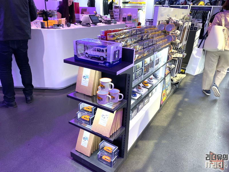 한쪽에는 르노의 다양한 굿즈들이 판매되고 있습니다. 제가 가장 설레였던 공간인데요. 정말 다 사고 싶을 정도로 구매 욕구를 자극했습니다. 그래서 지인들 파리 선물도 여기서 다 해결했습니다.