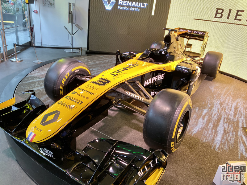 아뜰리에 르노를 들어서면 르노 스포츠를 상징하는 F1 머신이 전시되어 있습니다.