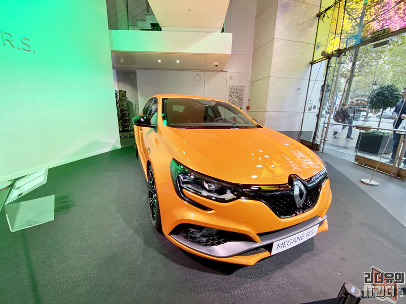 반대쪽에는 르노 메간 R.S가 전시되어 있습니다. 오렌지색의 화려한 컬러가 시선을 확 사로잡습니다.