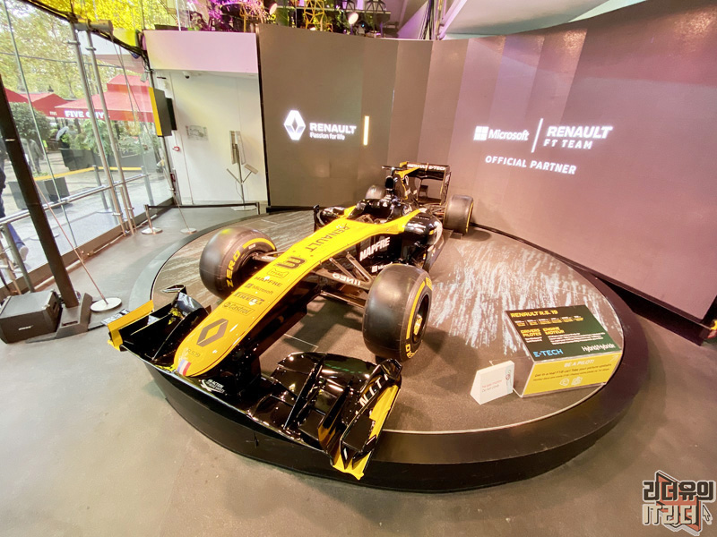 아뜰리에 르노를 들어서면 르노 스포츠를 상징하는 F1 머신이 전시되어 있습니다.