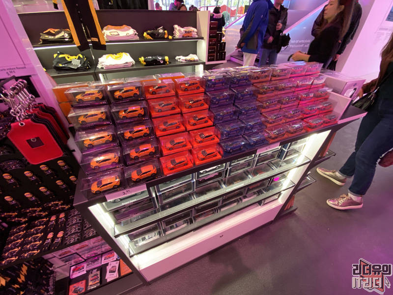 한쪽에는 르노의 다양한 굿즈들이 판매되고 있습니다. 제가 가장 설레였던 공간인데요. 정말 다 사고 싶을 정도로 구매 욕구를 자극했습니다. 그래서 지인들 파리 선물도 여기서 다 해결했습니다.