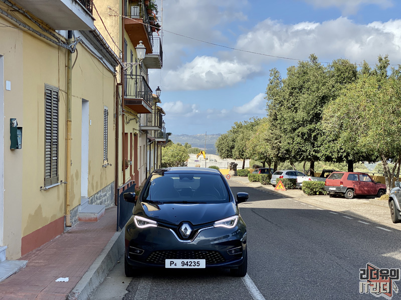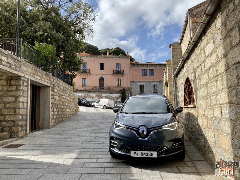 중간 경유지에 주차한 모습입니다. 맑은 하늘의 이탈리아 세르데냐섬과 전기차 르노 조에 3세대의 조합이 딱입니다. 참고로 우리나라는 제주도가 전기차 특별 지역으로 되어 있죠. 이탈리아 세르데냐섬도 환경을 생각해 전기차에 대한 다양한 지원을 하고 있다고 합니다.