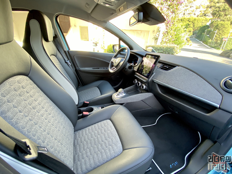 르노 조에 운전석, 조수석 모습입니다. 관리 측면에서는 확실히 가죽이 유리해 보입니다.