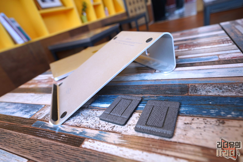 센스있는 변화죠~ 그리고 놀라운 포인트 하나! 다리가 왠지 약해 보이겠지만 전혀 약하지 않습니다. 강한 힘으로 눌러도 버틸 수 있는 힘을 가지고 있습니다. 일반적인 노트북 스탠드와 똑같다고 보시면 됩니다.