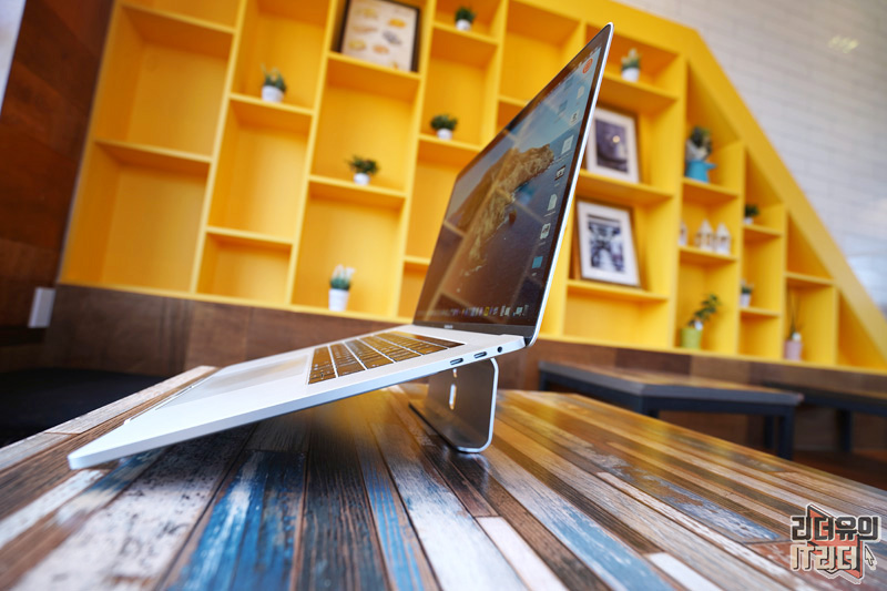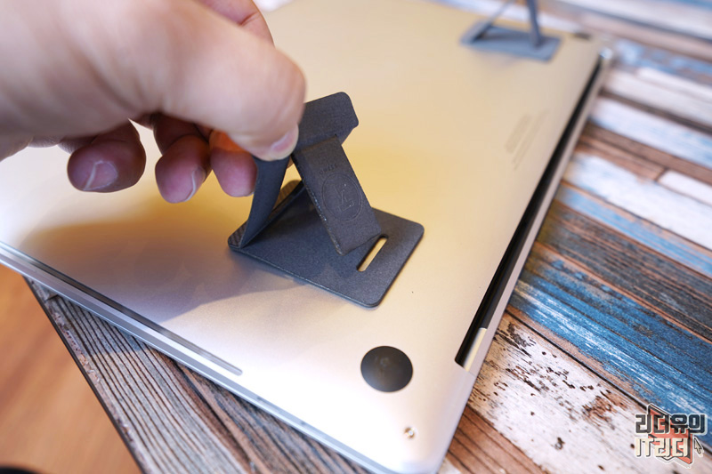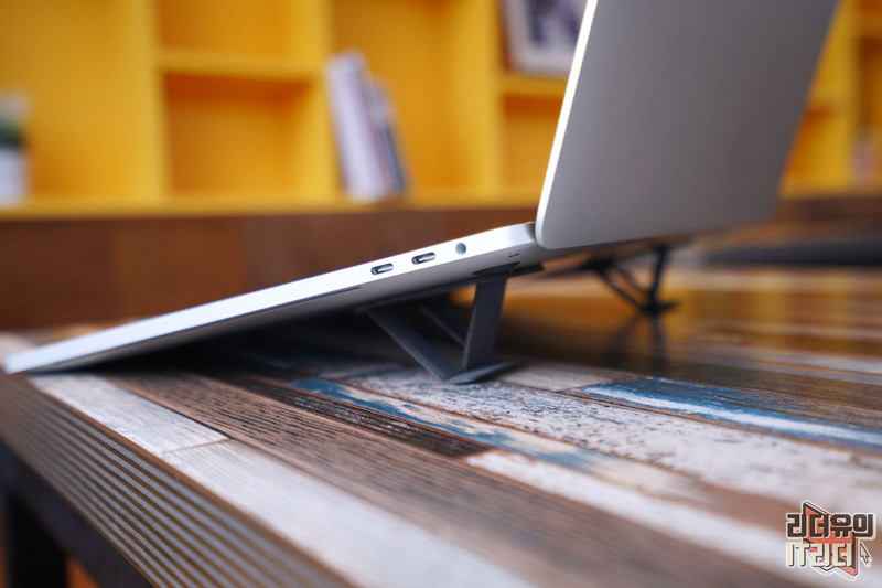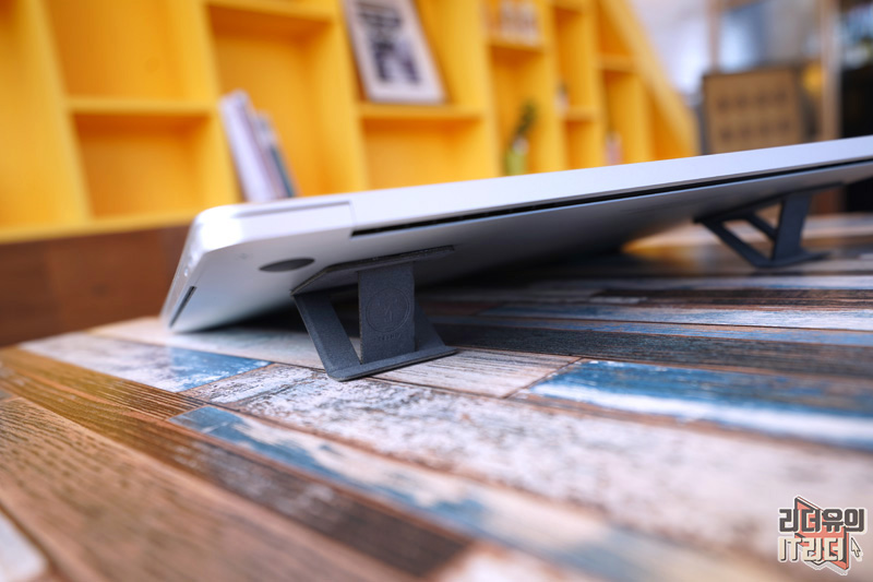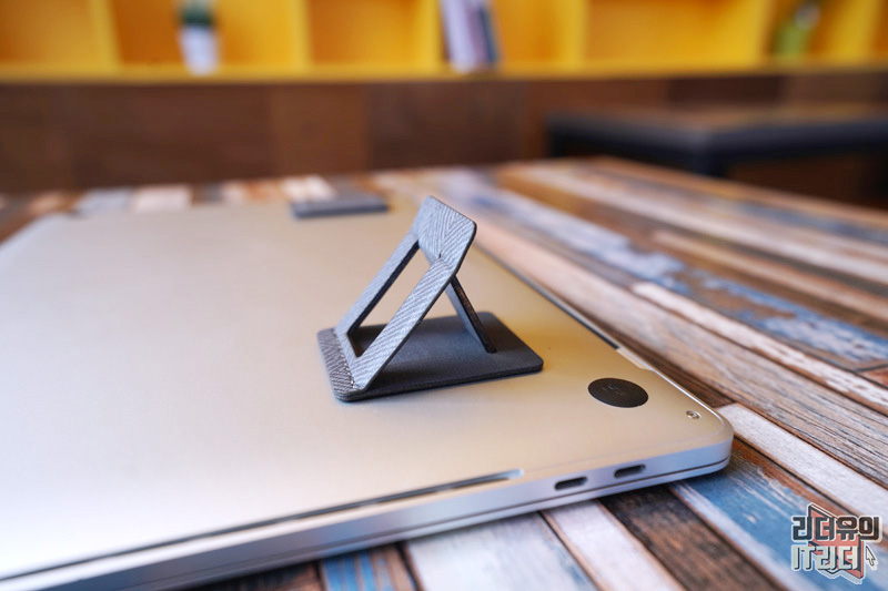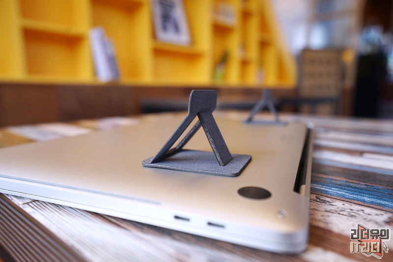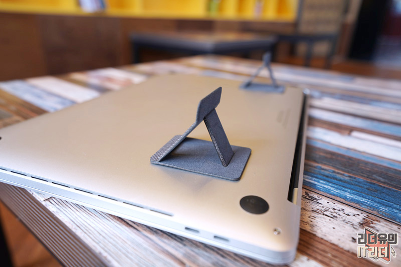 일반적인 노트북 스탠드는 멋스러운 매력과 각도가 더 높게 된다는 장점이 있습니다. 그래서 집이나 회사에서는 이렇게 사용하는 것도 매력적입니다. 그런데 휴대하면서도 사용하실 분들은 테스모 킥스탠드를 주목해 볼 필요가 있습니다. 물론 집이나 회사에서도 사용 가능합니다. 너무나 간단하기 때문에 어디서나 노트북 스탠드로 사용할 수 있다는 강점이 있습니다. 그리고 테스모 킥스탠드를 붙인 상태에서는 일반적인 노트북 스탠드에 그냥 올려서 사용도 가능하기 때문에 어느 하나를 포기하지 않아도 된다는 점이 좋습니다.