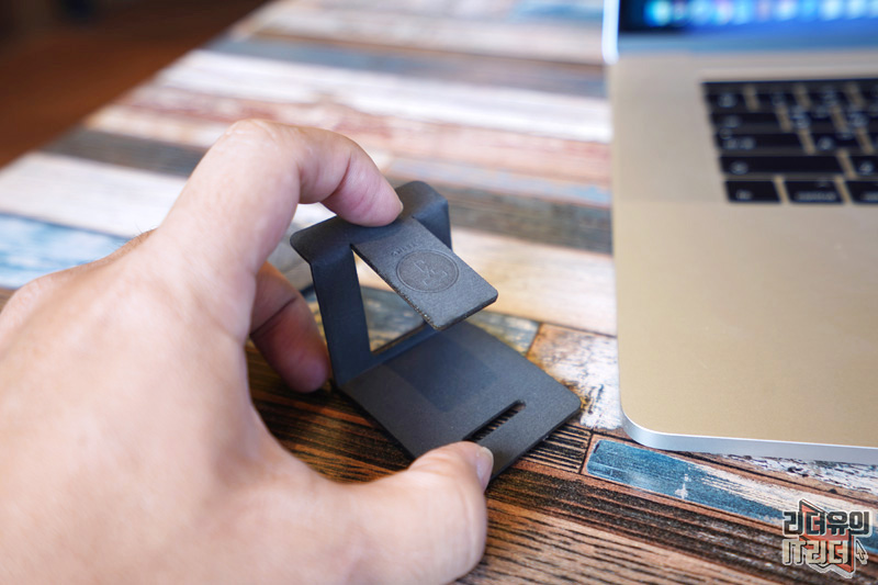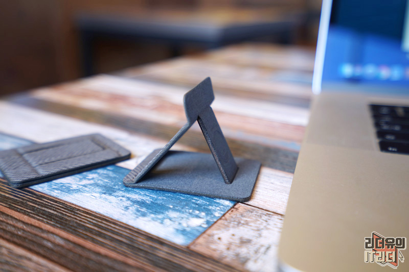 테스모 킥스탠드는 접혀진 모양을 펼쳐서 거치대로 만들게 됩니다.