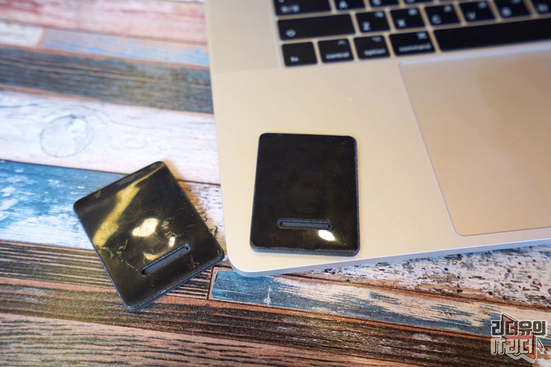 뒤쪽을 보면 접착할 수 있게 되어 있습니다. 그냥 노트북에 부착만 하면 되는 것입니다. 그리고 놀라운 점은 한번 부착해서 끝나는게 아니라 여러번 탈부착을 할 수 있다는 것입니다. 다른 노트북에도 붙이고 태블릿PC에도 붙이고 다 가능합니다. 300번이나 떼었다 붙였다 할 수 있다고 하니 참고해 두시기 바랍니다.