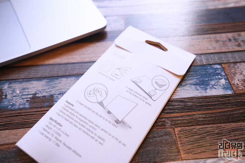 테스모 킥스탠드 패키지 입니다. 접착식 노트북 스탠드이기 때문에 보호필름 같은 패키지에 들어 있습니다. 정말 작습니다.