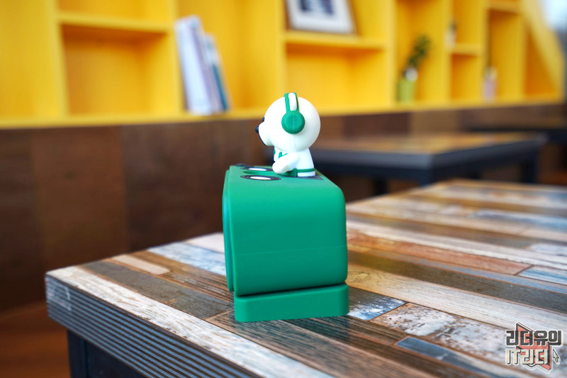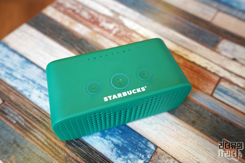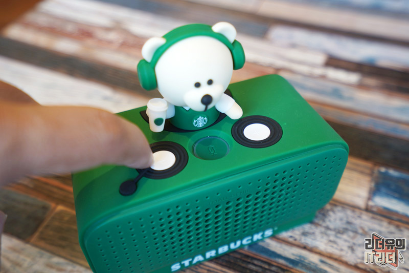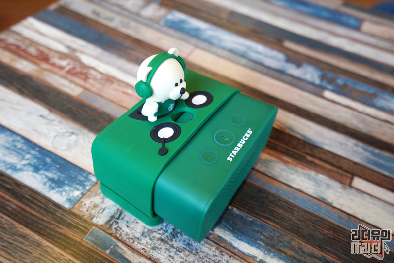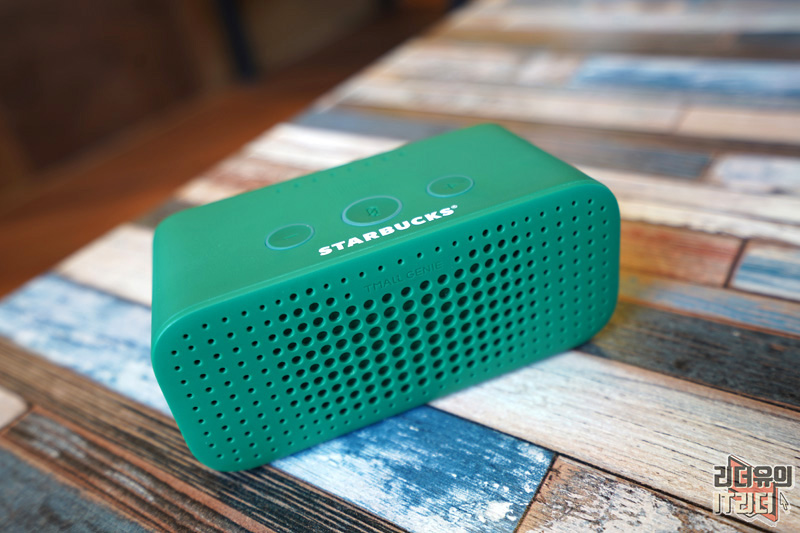 스타벅스 스피커 디자인은 스타벅스의 컬러가 그대로 적용된 디자인이고 스타벅스 로고가 새겨져 있습니다.