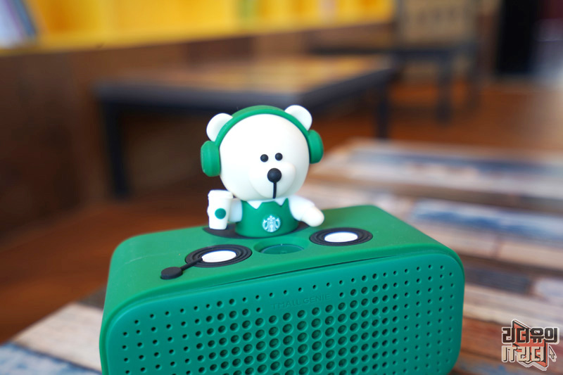 DJ 느낌을 제대로 살린 곰돌이 모습! 스타벅스 컵이 포인트 입니다.