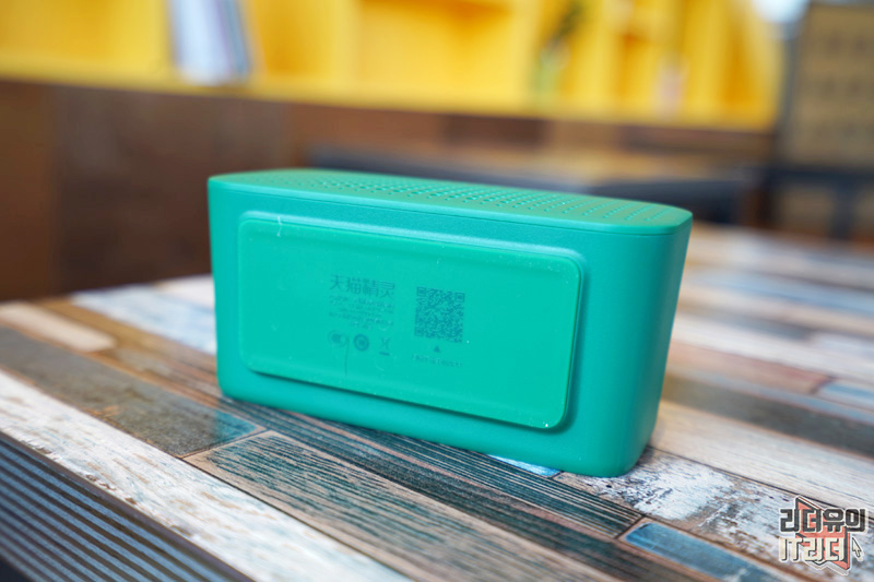 윗면에는 버튼이 3개가 있습니다. -, + 볼륨 버튼이 있고 가운데에는 플레이/정지 버튼입니다. 중국에서는 AI 스피커로 사용이 되는걸로 보이지만 한국에서 사용할때는 중국어를 모르기 때문에 사용 불가라 보시면 됩니다. 중국어 능력자는 이용하실 수 있을 것 같습니다.