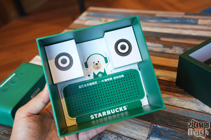 메인 박스를 오픈하면 이렇게 스타벅스 스피커가 들어 있습니다.