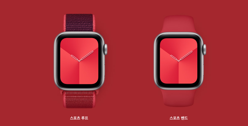 그리고 애플워치를 위한 스포츠루프, 스포츠밴드가 프로덕트 레드 (PRODUCT)RED로 준비되어 있습니다.