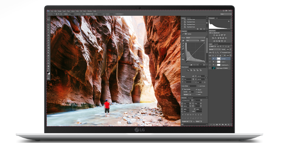 LG그램17은 최초로 17인치 노트북 시장을 연 그램답게 넓은 17형 화면과 작업에 효율적인 16:10 화면비를 가지고 있는데요. 뿐만 아니라 WQXGA(2560*1600)의 고해상도를 가지고 있어 문서 작업은 물론 사진/영상 편집 작업, 콘텐츠 감상 시에도 적합합니다.
