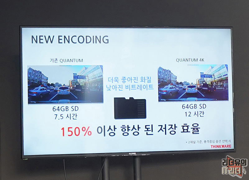 그리고 코덱이 개선되었습니다. 새로운 인코딩 방식으로 같은 용량의 저장공간이라도 더 많은 시간 촬영이 가능하고 화질도 150% 이상 좋아졌습니다.